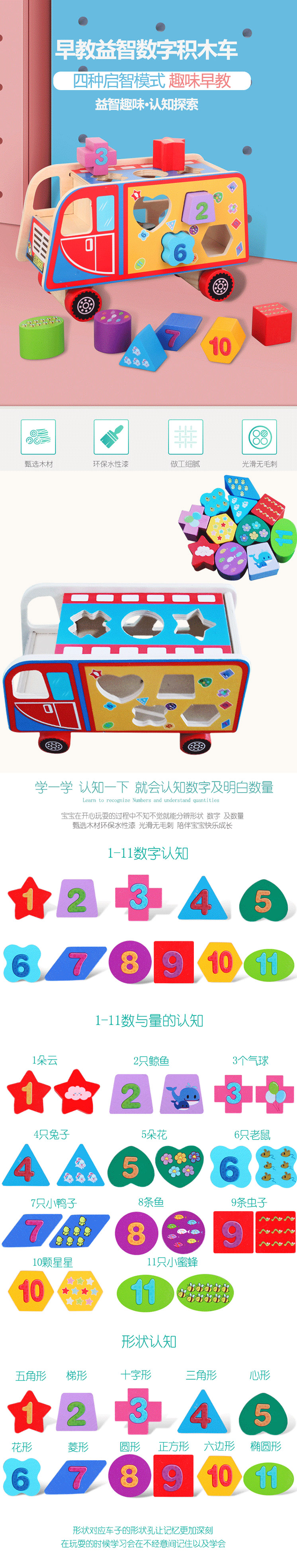 益智数字母早教积木质拼图